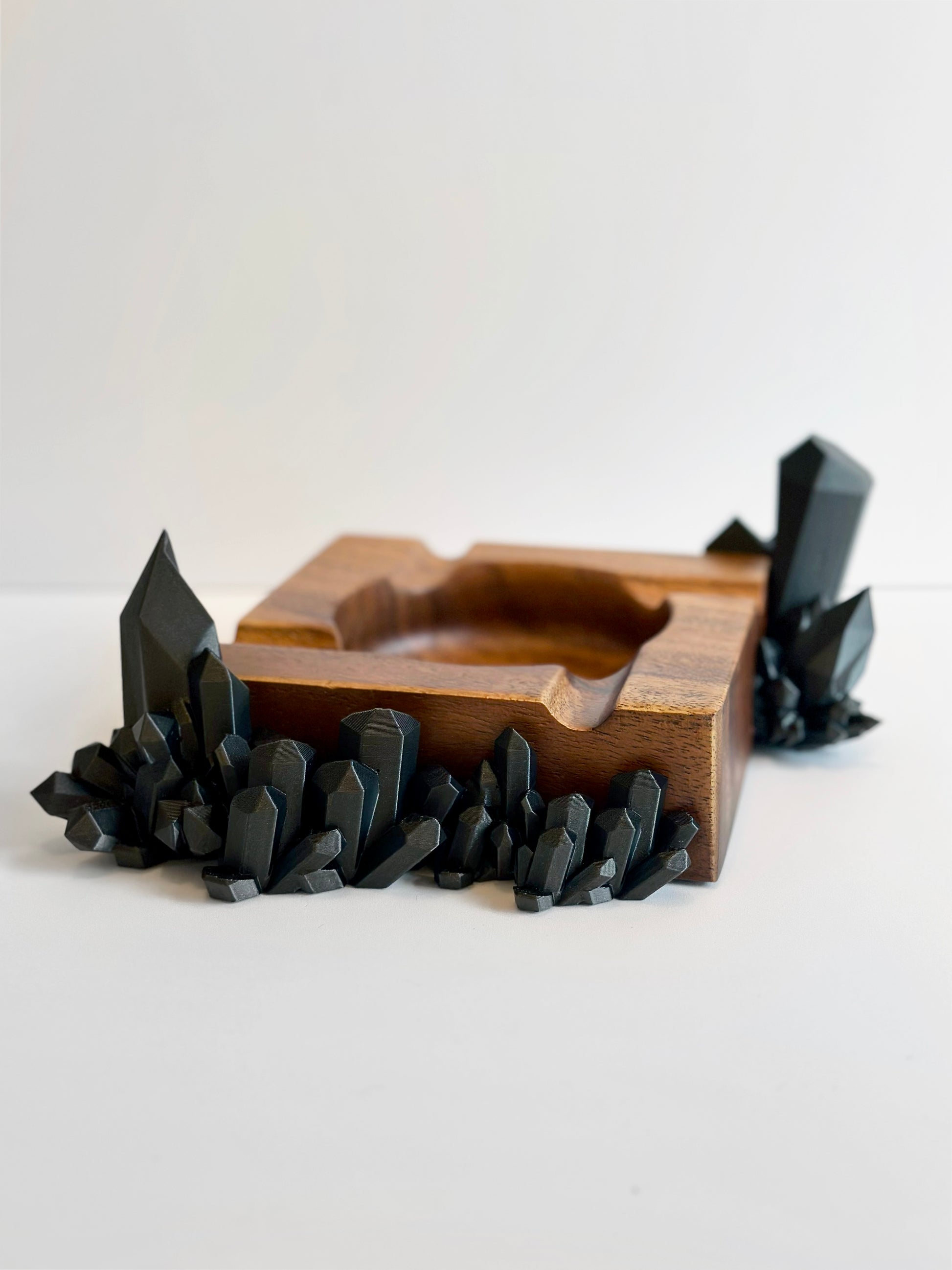Add some sparkle to your smoking routine with our Crystal Ashtray. Made from walnut wood and embellished with 3D printed crystal clusters, this ashtray is both functional and eye-catching. Keep your ashes contained in style and elevate your smoking experience.