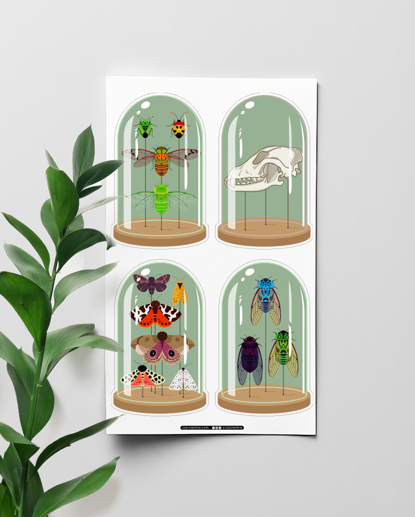 Transform any surface with our Curiosity Domes sticker sheet. These quirky, nicely displayed creatures add a touch of whimsy to your belongings. Perfect for decorating notebooks, laptops, or anything in need of a little whimsy. (No bugs were harmed in the making of these stickers!)