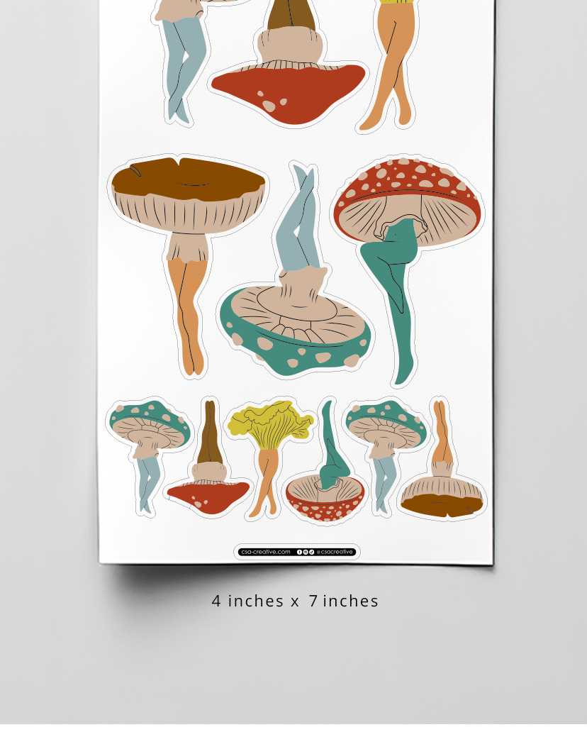 Decorate your books with our Mushroom Ladies sticker sheet! Featuring whimsical illustrations of mushroom-themed ladies, this 4"x7" sheet will add a touch of nature morph to everything you have. Perfect for decorating notebooks, laptops, or anything in need of a little whimsy.
