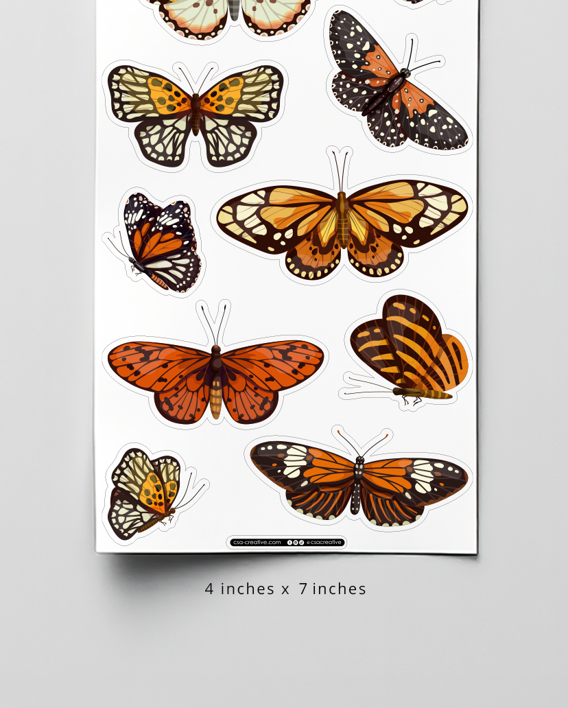 Transform any surface with our Orange Butterflies sticker sheet. These quirky, double-winged creatures add a touch of whimsy to your belongings. Perfect for decorating notebooks, laptops, or anything in need of a little whimsy. (No bugs were harmed in the making of these stickers!)