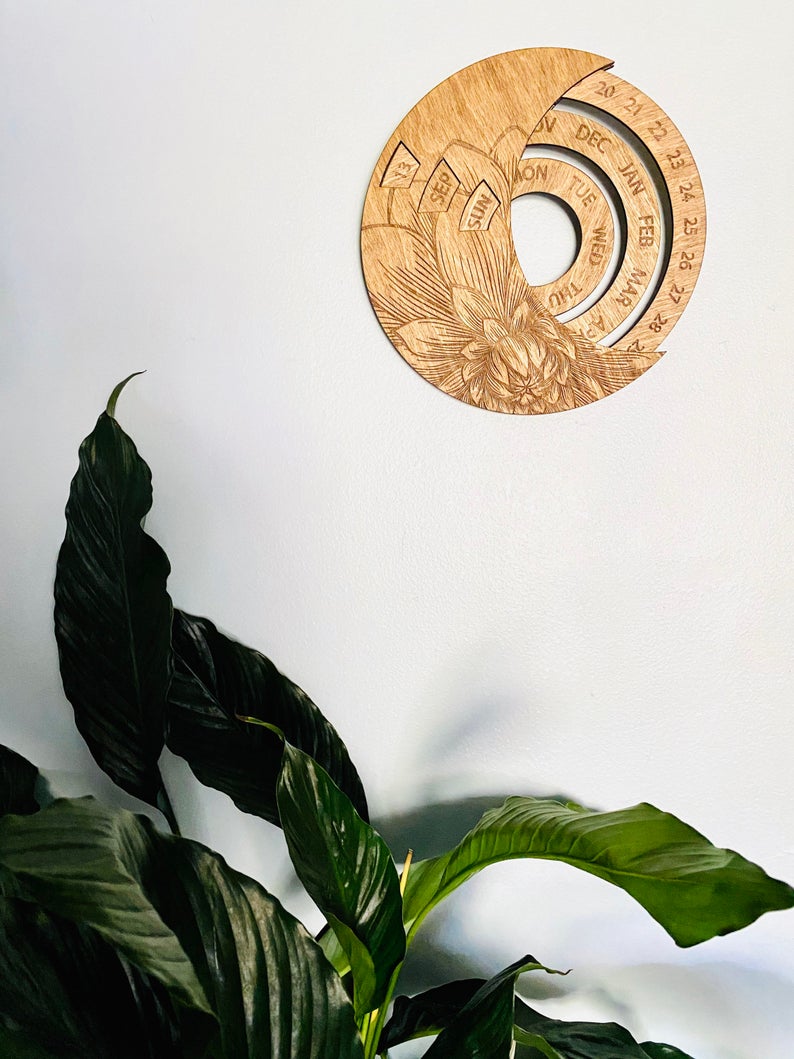 A gorgeous dahlia flower is engraved on the front layer to add even more this one-of-a-kind calendar, so go ahead and hang this artisan made calendar on the wall in your favorite room because you will want to look at it all the time!