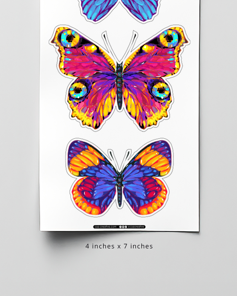 Transform any surface with our Rainbow Butterfly sticker sheet. These quirky, double-winged creatures add a touch of whimsy to your belongings. Perfect for decorating notebooks, laptops, or anything in need of a little whimsy. (No bugs were harmed in the making of these stickers!)