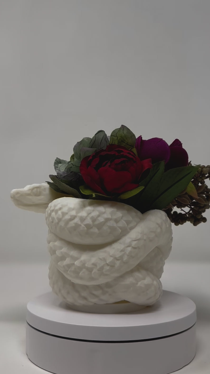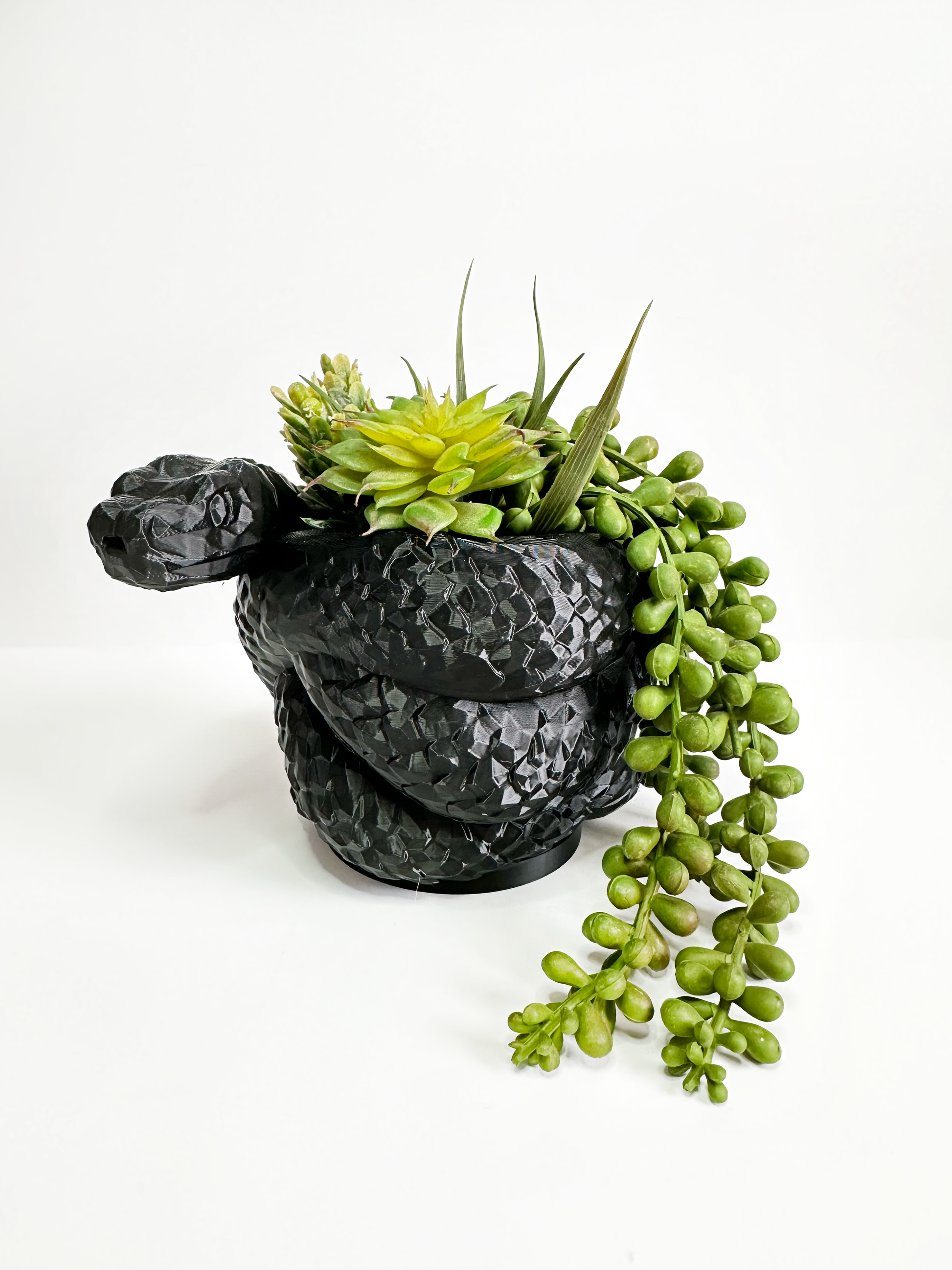 Introducing the Snake Vase - a unique piece that combines the functionality of a planter and the striking aesthetics of a snake. Crafted with careful attention to detail, this cobra-shaped pot doubles as a catch-all, making it a practical and eye-catching addition to any space. Get yours today and add a touch of nature to your home decor. Elevate your plants with this bespoke planter, crafted using state of the art modeling technology. In addition, this is a multi-functional piece. You can use this as a pot, an LED candle holder, candy dish, or a catch all.