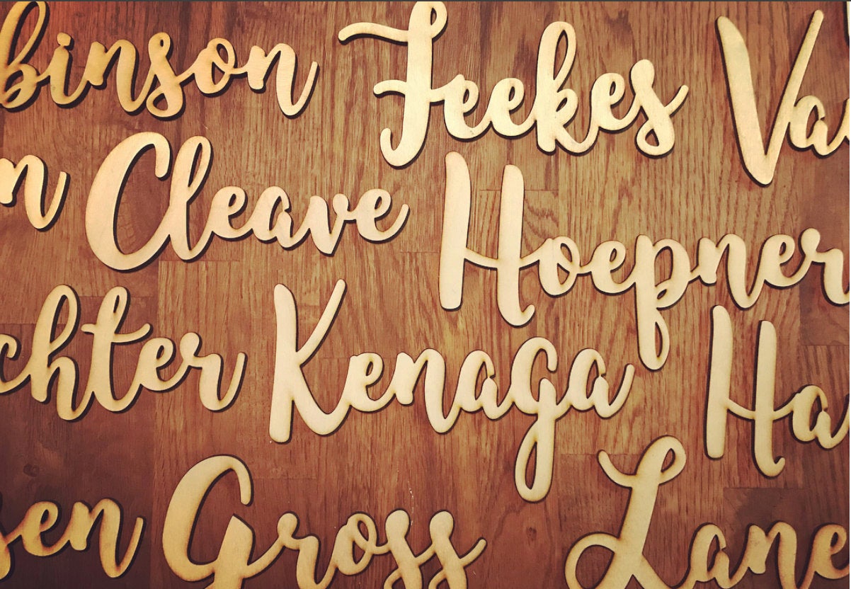 These Laser Cut Name Place Cards will be the perfect addition to your Wedding Decor, Dinner Party, Holiday Decor, or any other event that you are planning! Each name is laser cut from birch wood, and I do offer an option to have your names hand painted. This is created from birch wood which is 1/8” thick.