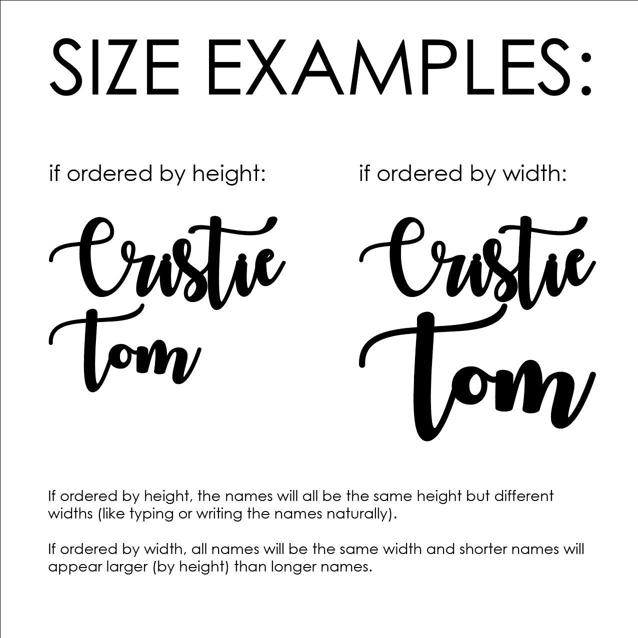 The size selected is the width of each name. For example, if 5" wide is selected, every name will be 5" wide. Longer names will be smaller in height and shorter names will be taller in height, but they will all have the same width.