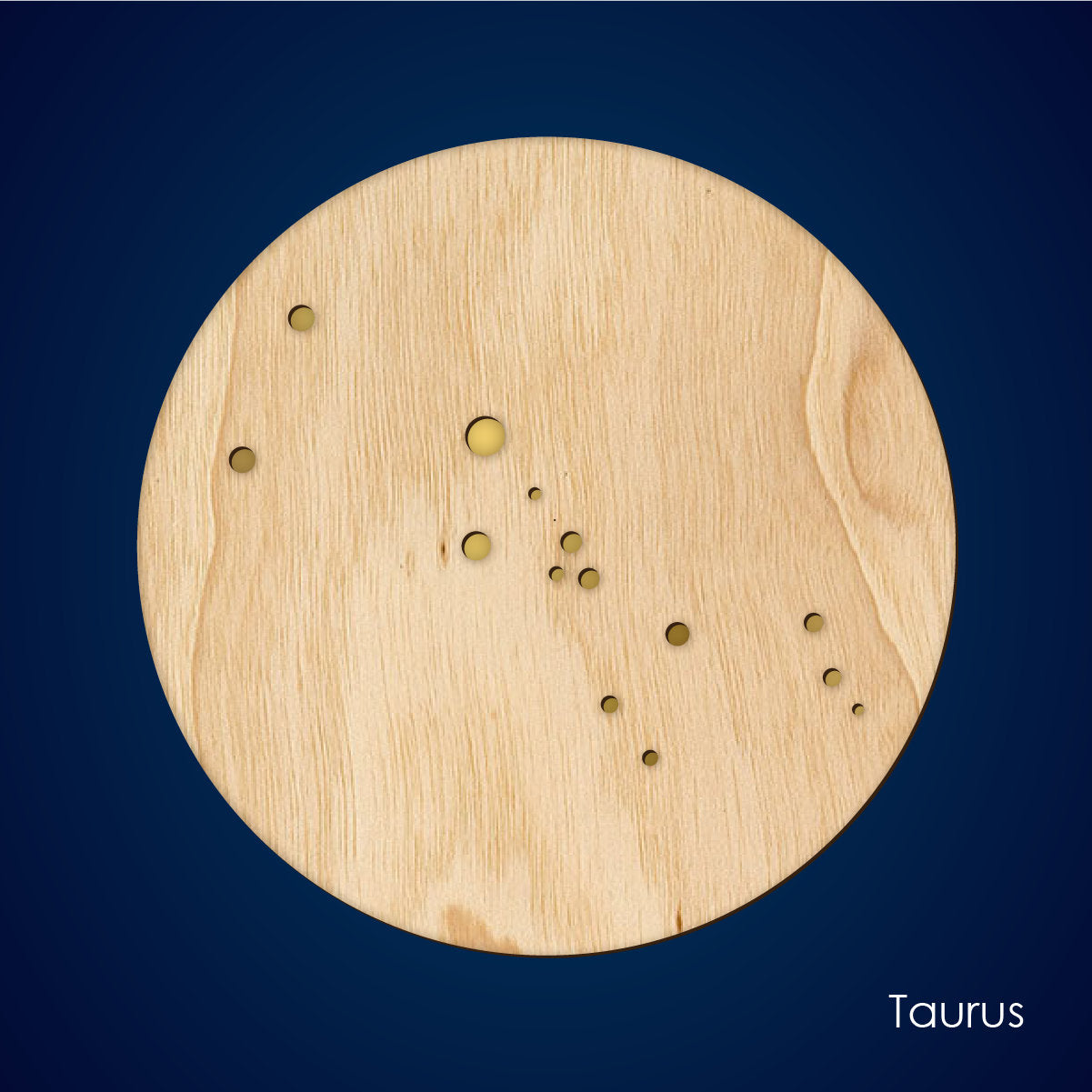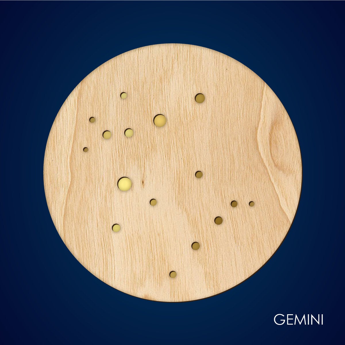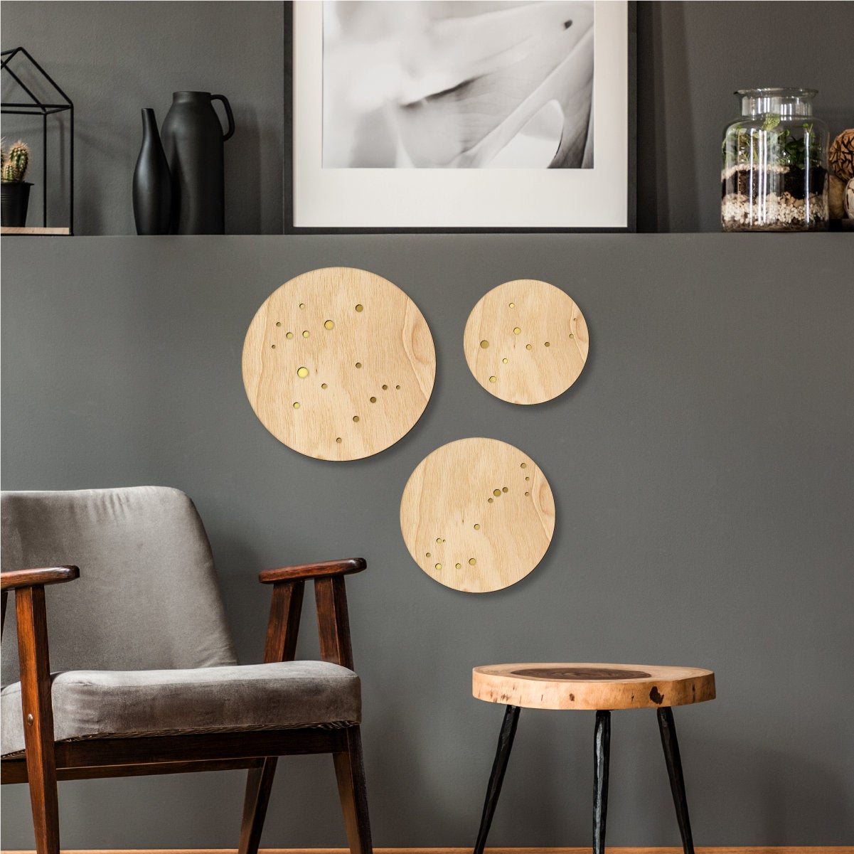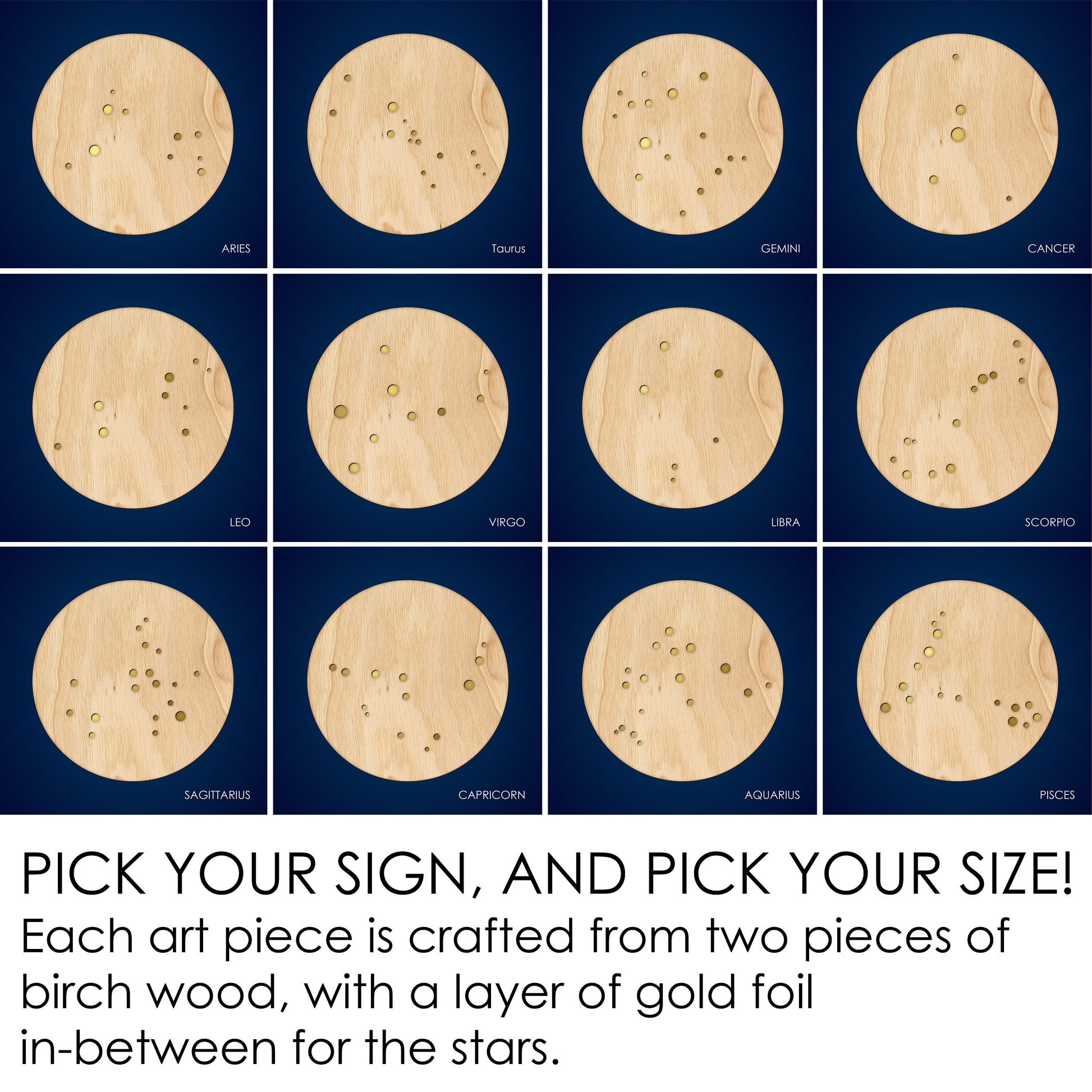 Light Wood Zodiac Wall Hanging, Gold Inlay