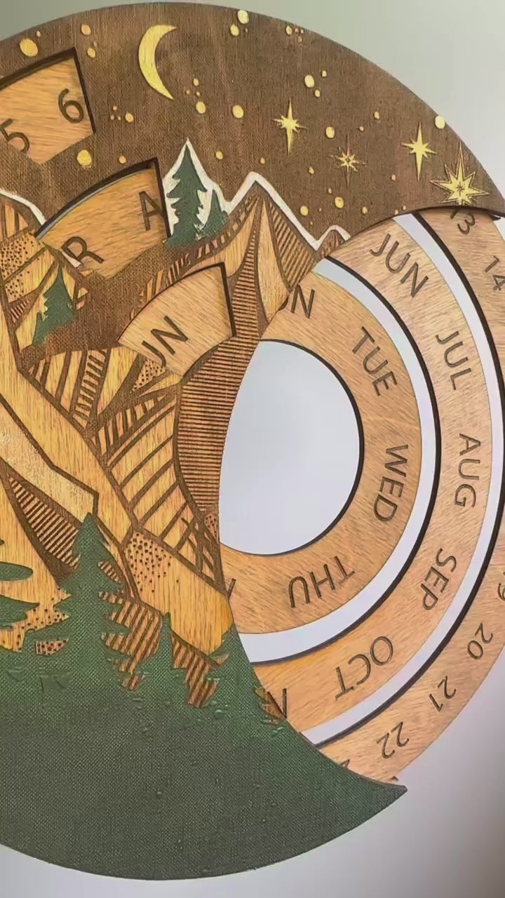 Our hand painted calendars create heirloom pieces since each one is just that unique. You can use this daily, or keep it on a specific date that is important to you. For daily use, you will never have to buy another calendar again because of the ease of this sustainable handcrafted piece. Each calendar has three rings to allow you to keep track of the month, day and date. (These do not move on their own. You will have to do that. We test every calendar prior to shipment, but we suggest moving the rings a few times upon receipt to loosen them up.)