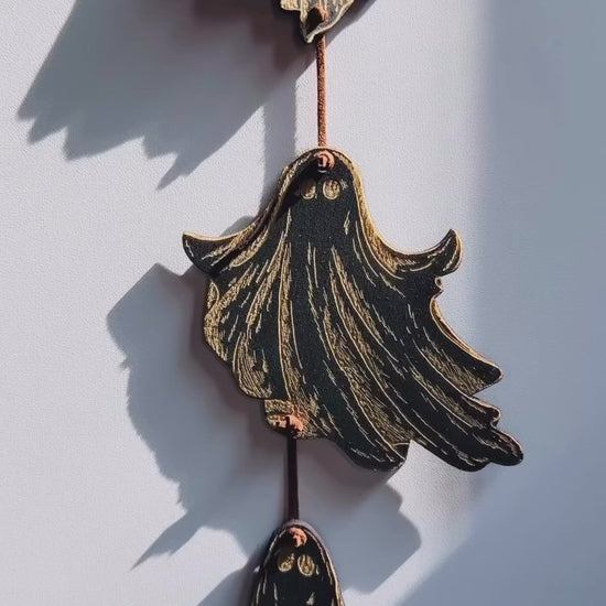 Elevate your Halloween decorations with our handcrafted Ghost Garland. Featuring six intricately engraved wooden ghosts, each piece is strung together on a durable brown vegan leather cord, making it an eco-friendly choice for your spooky celebrations. Perfect for adding a touch of eerie elegance to any room or event.