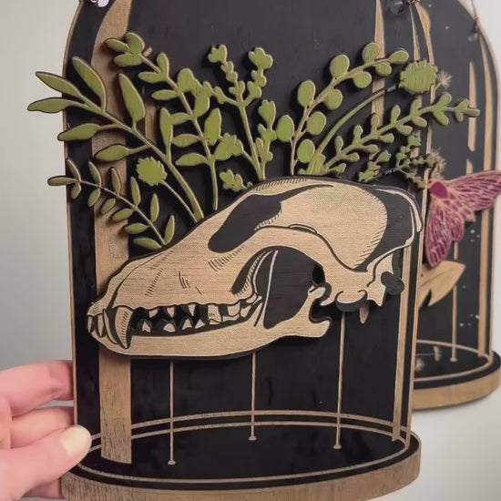 Wolf Skull Botanical Curiosity Dome | Layered Wood